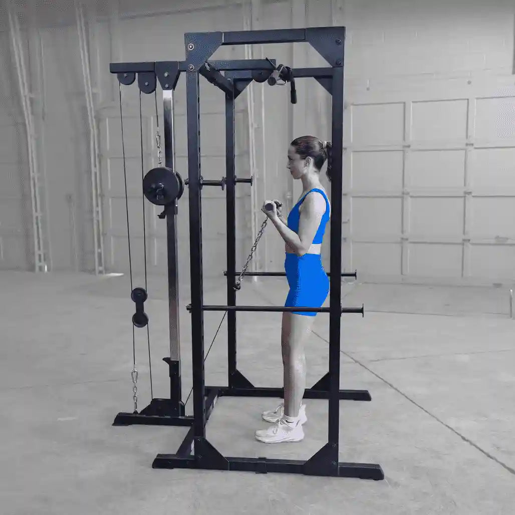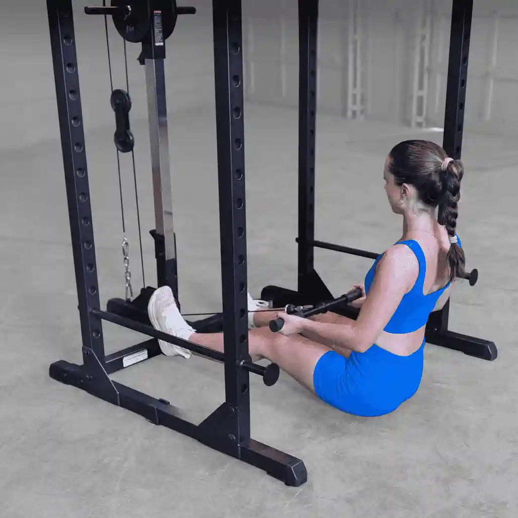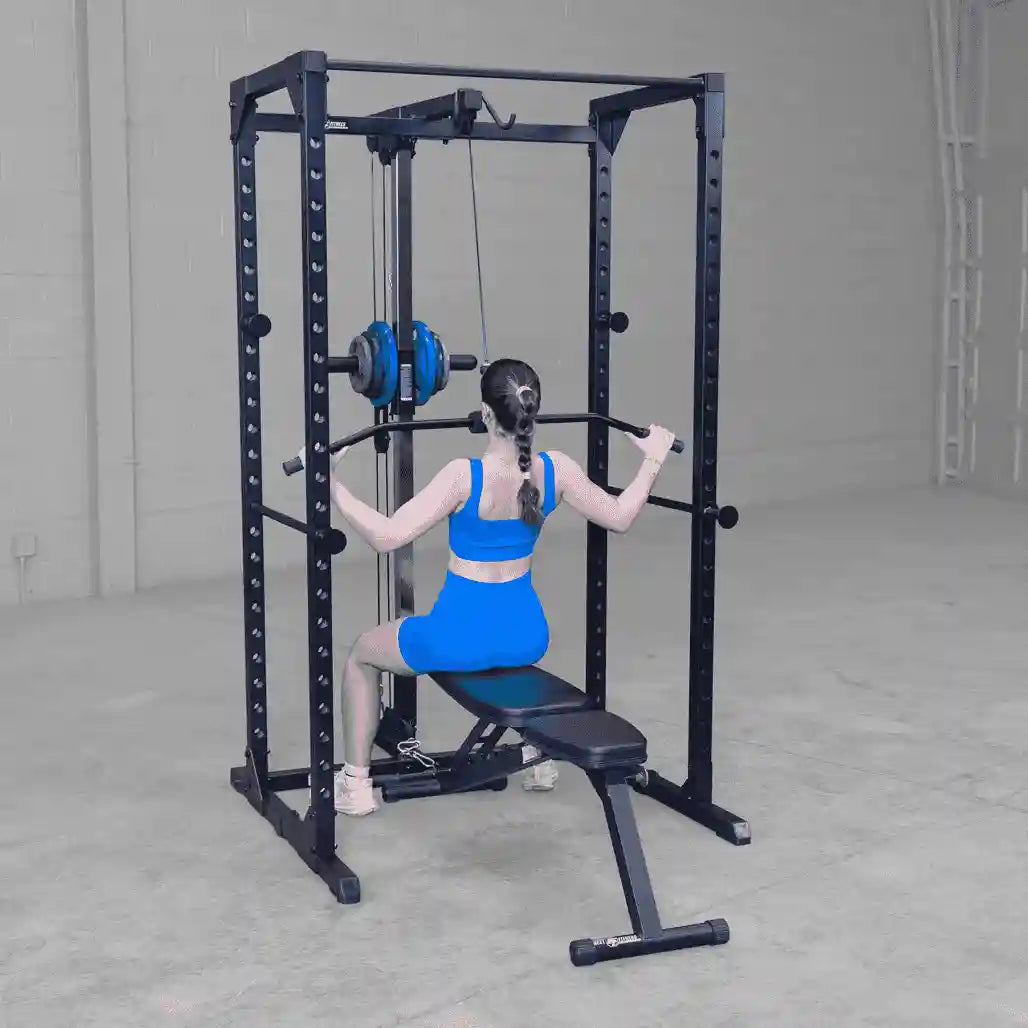Body-Solid Best Fitness Lat Attachment for BFPR100R Best Fitness Power Rack. The BFLA100 Lat Attachment transforms your BFPR100R Power Rack into a complete home gym. Perform lat pulldowns, rows, biceps curls, shrugs and more in the comfort and stability of your existing power rack.
