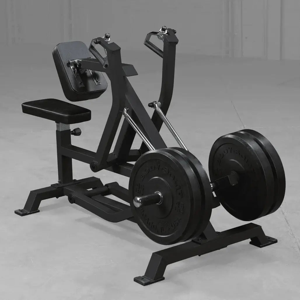 Built with a 2" x 3" 11-gauge steel mainframe, the LVSRB Leverage Seated Row features dual-axis, unilateral, diverging-arm movement for biomechanically correct exercises. 360-degree articulating hand grips for natural range of motion and gas-assisted chest support to accommodate different arm lengths and isolate the back muscles. The LVSRB Leverage Seated Row is constructed with the commercial facility in mind and has durable, double-stitched upholstery, an electrostatically applied power-coat finish in metallic silver and gas-assisted adjustable seat pad.