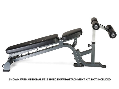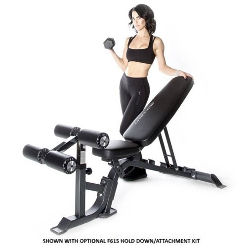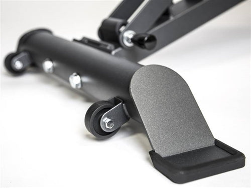Built like a tank, and designed for ultimate versatility, our Commercial F605 FID Bench cannot be beaten. Switching Exercises? No problem! Utilizing our easy adjust ladder catch system the user can choose from seven different positions, ranging from a -20’ decline* to an 85’ upright position. The integrated lift handle and transport wheels allow for simple and easy maneuvering when relocating and storing the bench in an upright position. The 3 point stance and rubber feet ensure that the bench will not rock. Additional attention to comfort, style, and accessory use gives this bench package a huge advantage over all others.