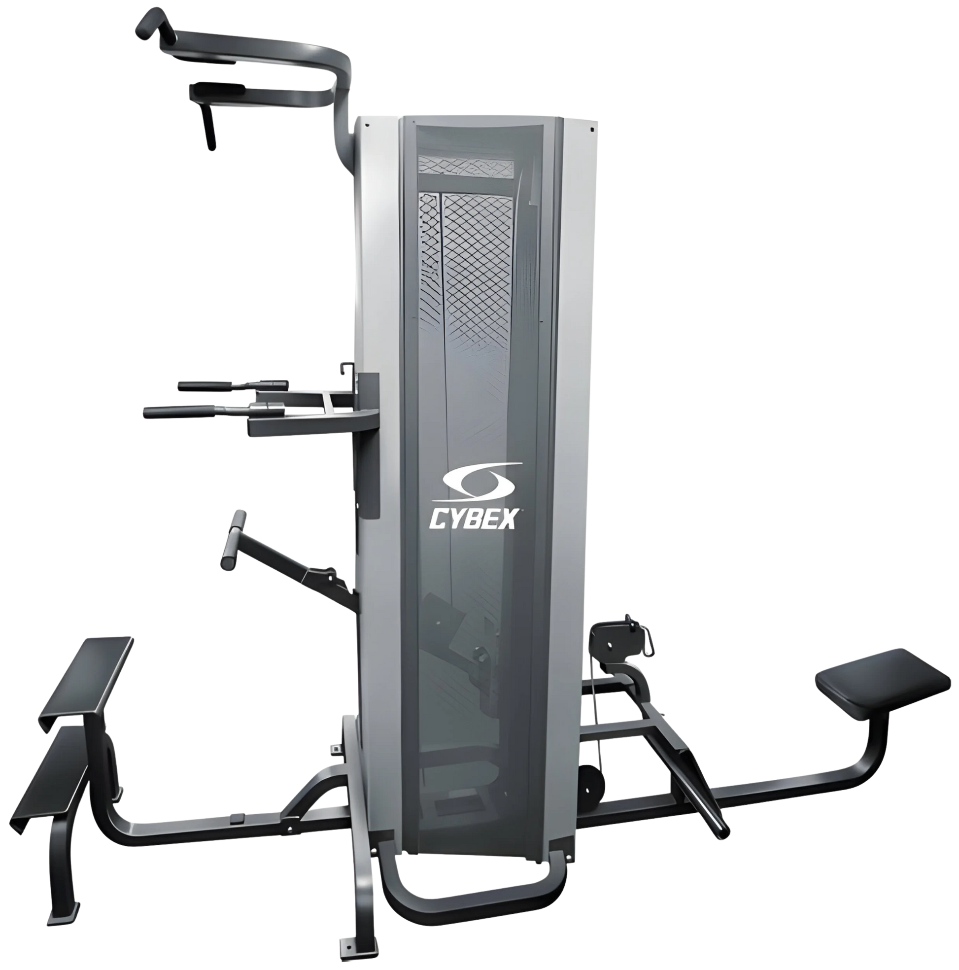 The Cybex Dual Standing Chin Dip Assist / Seated Row is a commercial grade 3-in-1 combination machine allowing for assisted chin ups, pull ups, dips, as well as seated rows.