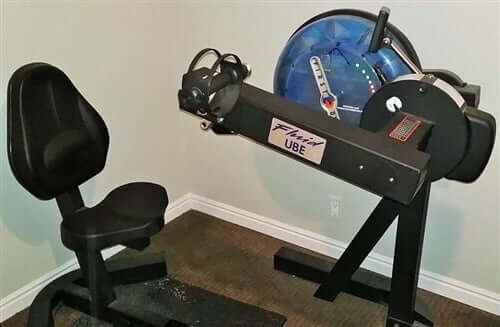 An upper body Ergometer, commonly referred to as a UBE in physical therapy clinics, is a piece of exercise equipment similar to a bicycle that you pedal with your arms. The Upper Body Ergometer improves cardiovascular endurance, develops muscle and improves upper body strength. Using an Upper Body Ergo as part of a high intensity workout, enhances the lung's ability to provide oxygen to the blood and the working muscle tissue by asking the heart to pump harder.