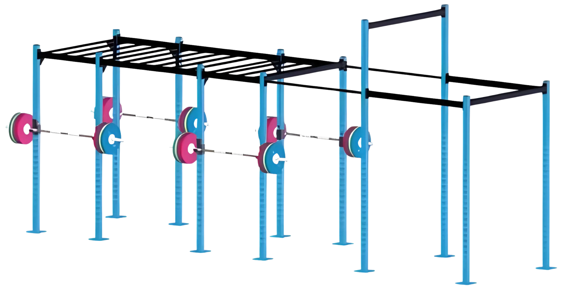 The French Fitness Rig is made of sturdy 75mm x 75mm x 3mm, 11 gauge uprights. To create the ideal rig for your gym, simply decide on the height of your uprights (108" or 142" is around 9 feet or 12 feet), your pull-up bars, and your cross members. We provide a large selection of attachments that you can combine with your rigs to achieve your fitness objectives.