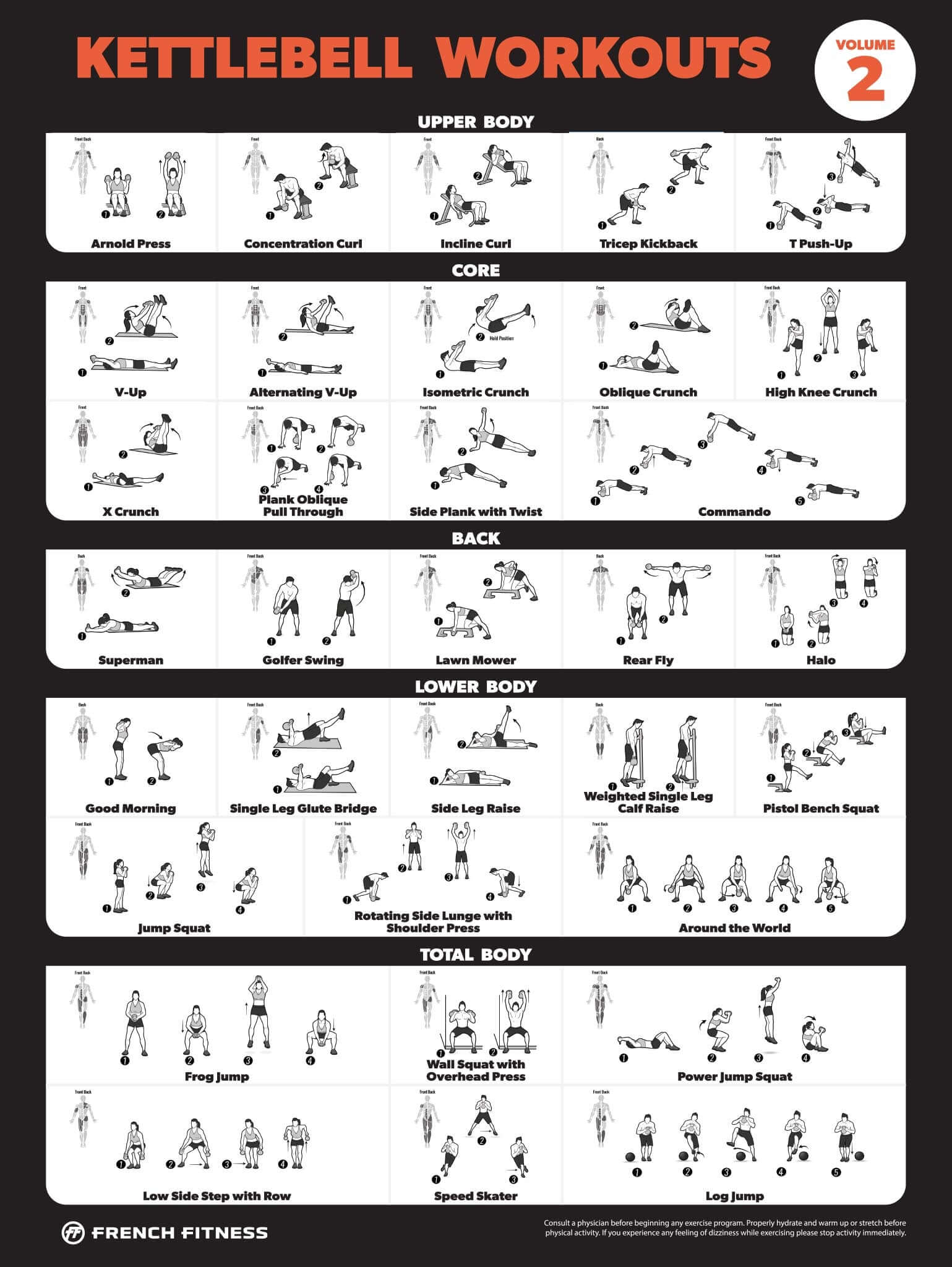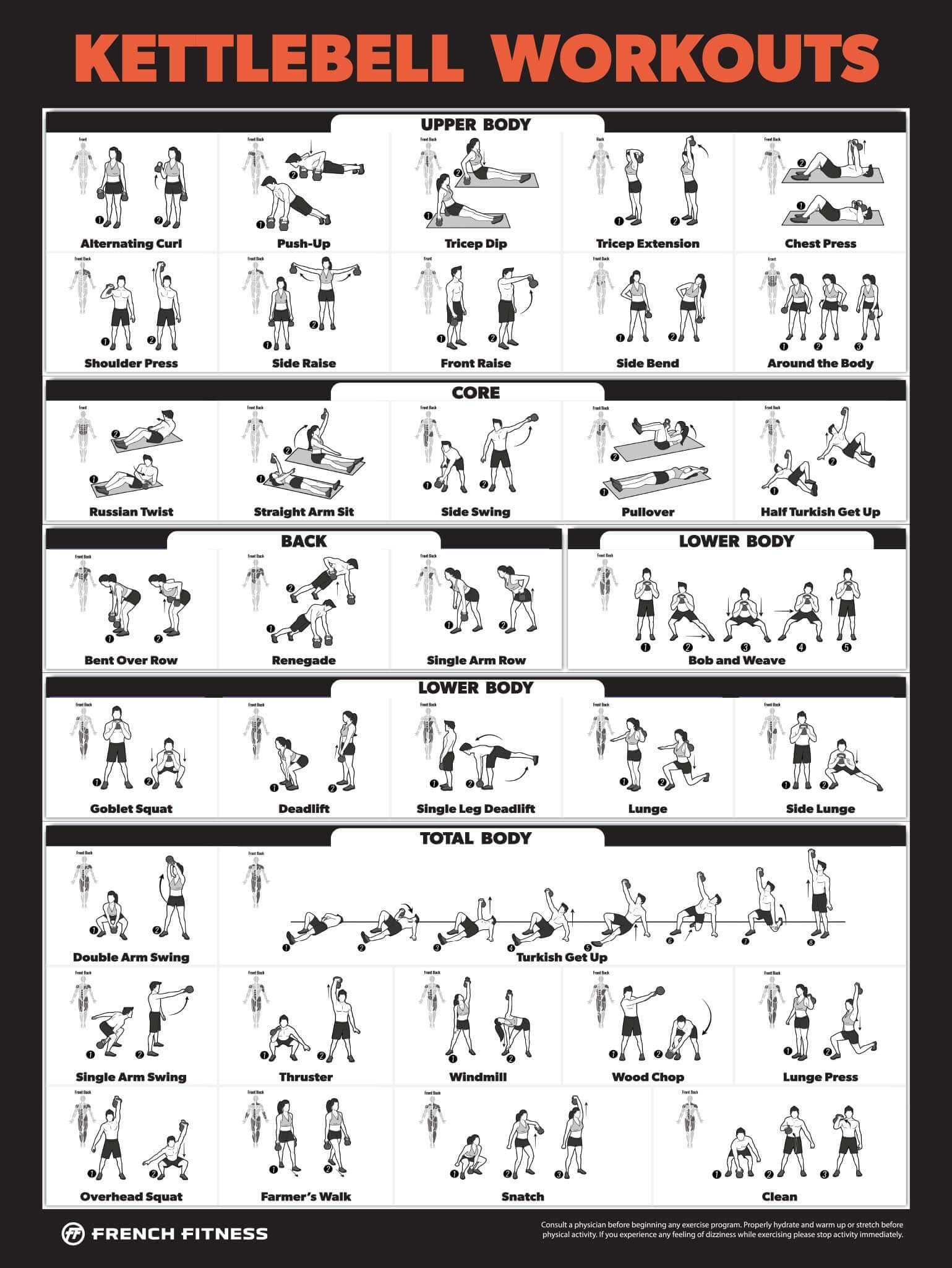 French Fitness Kettlebell Workout Training Charts / Posters (New)