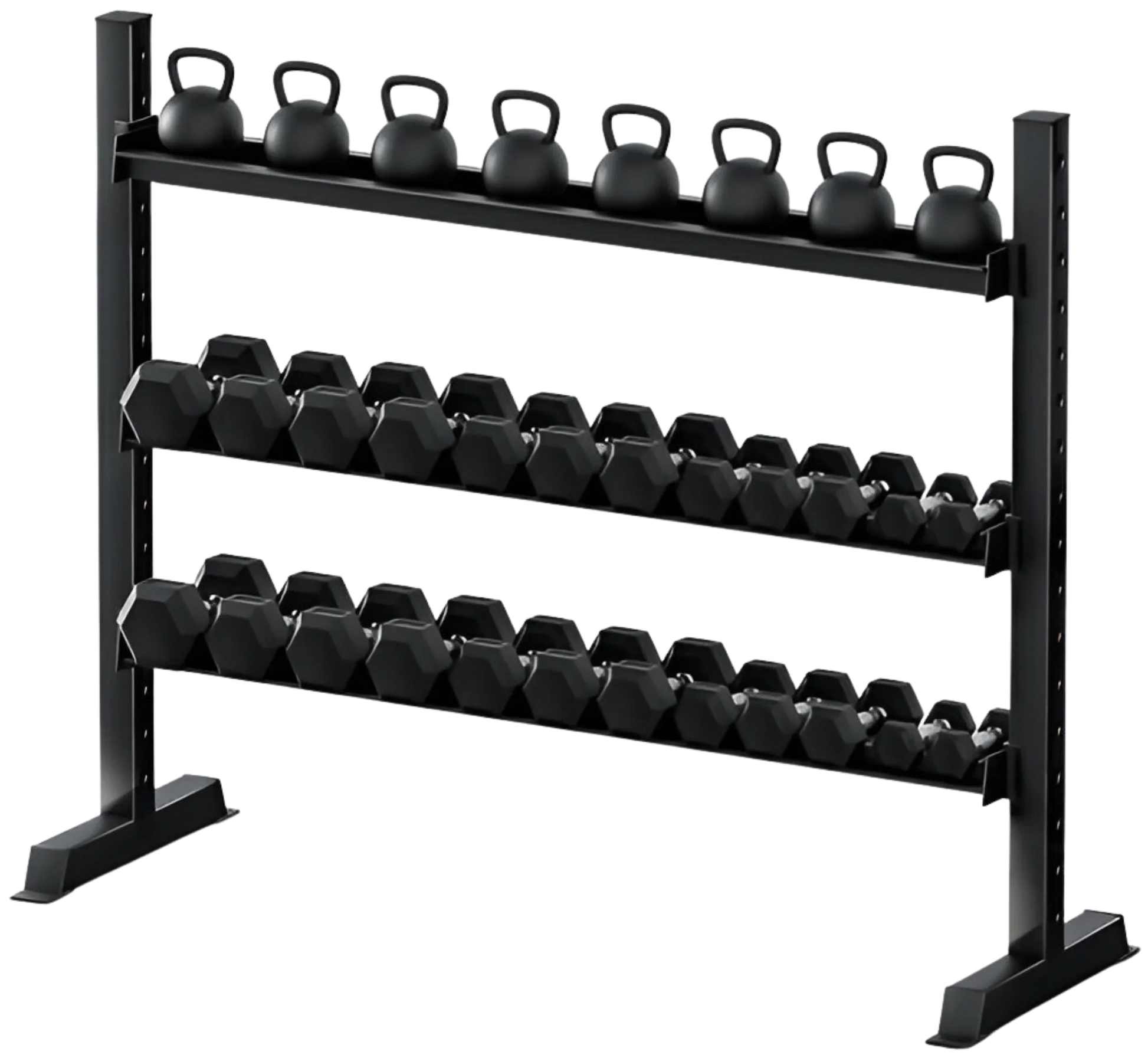 The French Fitness Monster Universal Storage System FF-MSS-123 combines the best features of the FF-MSS-48 and FF-MSS-77, offering a unique storage solution with up to six tray options. With 43" and 71" tier lengths, you can tailor your choice to suit your specific requirements. Enables you to choose from among four available tiers, such as the ball tray, bumper plate tray, dumbbell tray, and kettlebell tray. The French Fitness Monster Universal Storage System FF-MSS-123 storage rack offers a tailored, space-efficient solution to keep your fitness equipment neat and accessible.