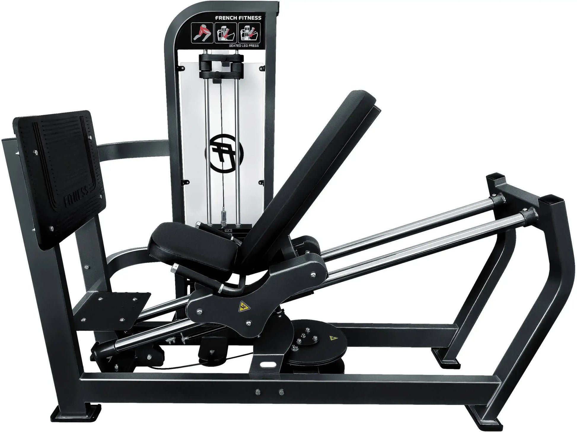 NOTE: This is the same machine as the French Fitness Shasta Seated Leg Press Sled / Calf Raise except black in color, no other differences. If you want this machine, but in silver, please click the above link.