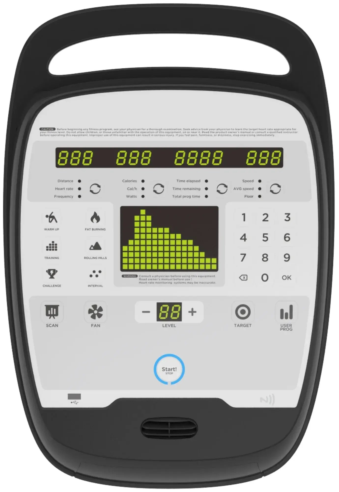 The French Fitness UB400 Commercial Upright Bike w/LED Console offers 25 different levels of resistance, 6 preset programs, and 1 target programs for users of different fitness levels. With multiple position and quick adjust handrails, you can easily find the perfect grip for an ergonomic posture, reducing strain on your wrists and shoulders. The adjustable seat allows you to fine-tune your riding position for optimal comfort and support. Users can track their time, distance, calories, speed, resistance, and heart rate with the clear easy-to-read LED display. The UB400 also features a large, comfortable padded seat that can accommodate all kinds of users.