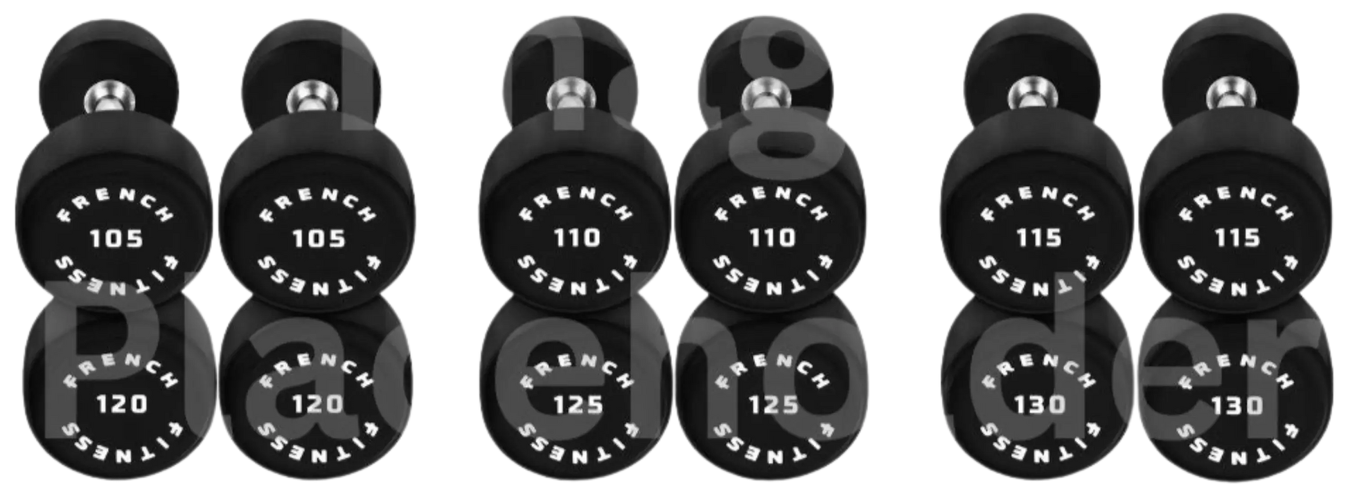 French Fitness Urethane Round Pro Style Dumbbell V2 Set, 105-130 lbs (New)
