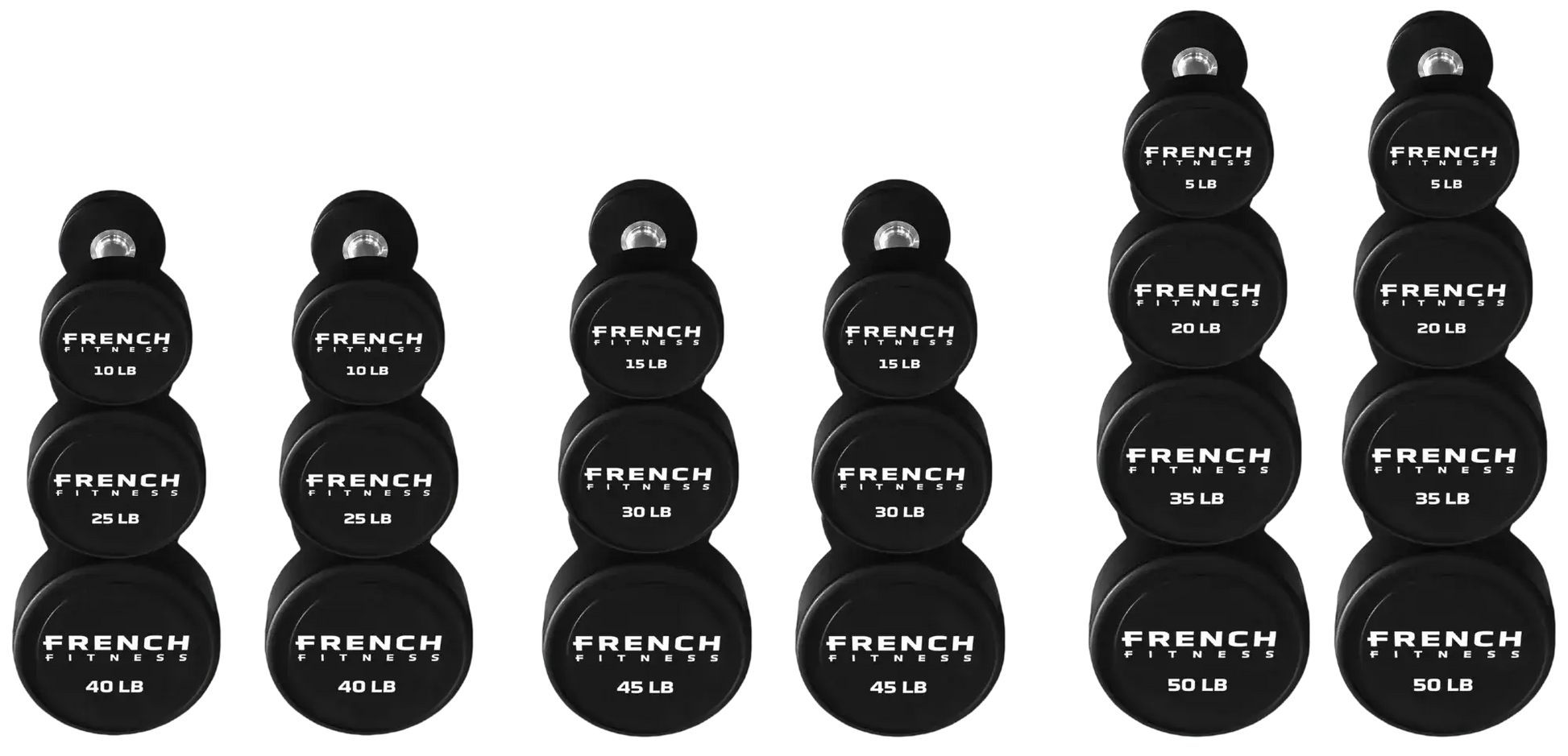 French Fitness Urethane Round Pro Style Dumbbells are available in: