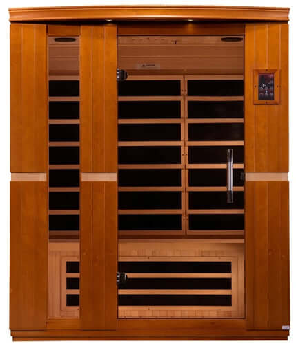 GoldenDesigns DYN-6336-01 Dynamic "Lugano" Low EMF Far Infrared Sauna, the Carbon Tech heating panels are engineered to produce a wider, softer heat that is evenly distributed throughout the sauna. Golden Designs Carbon Tech heating panels cover a significantly larger surface within the sauna. Dynamic Canadian Hemlock Saunas bring healthy living and longevity to the privacy of your home cost effectively. Modern technology and energy efficiency in FAR infrared carbon heating panels allow beneficial penetrating FAR infrared waves to remove body toxins, increase blood circulation, ease pain from sore muscles or aching joints, burn calories and improve skin tone among other benefits. Dynamic Low EMF FAR Infrared Saunas are constructed with the environment in mind which accounts for our efforts in using Reforested Canadian Hemlock wood. Our sauna walls are double paneled constructed with the thickest interior and exterior wood planks compared to others in the same industry. This all translates to a quality sauna that retains heat more efficiently, heats up faster and wastes less energy. Our Low EMF FAR infrared Carbon Energy Efficient heating panels are 30% larger than saunas heated by ceramic tubes and penetrate skin 40% more to maximize therapeutic benefits. Unlike ceramic heaters, you will never have to replace our Carbon Energy Efficient heating panels. Dynamic Saunas Carbon Energy Efficient panels also heat up 30% faster than saunas equipped with ceramic panels and 100% faster than rock and water steam saunas. Dynamic Saunas 3-person sauna is designed for ease of use and is an outstanding value. Enjoy the convenience of operating a Dynamic Sauna with our dual (interior and exterior) soft touch control panel and LED display featuring sauna temperature and time functions. Every Dynamic Sauna is equipped with a reduced wattage floor and lower bench heater to allow the same benefits and treatment to your legs and feet without the burning sensation of other sauna manufactures. Enjoy your sauna session with your favorite music through the sauna's built in MP3 auxiliary or Bluetooth connection with speakers. Dynamic Saunas enhances your sauna experience with Chromotherapy (color therapy) lighting system. The sauna plugs into a dedicated 20 amp 120 volt (Please consult with an electrician) and the sauna may be installed on carpet and at any indoor location including the basement, garage, master bath or walk in closet. Our sauna would be a beautiful and worthwhile addition to any fitness room. See and feel the difference today! Sauna Use: Indoor Only |
