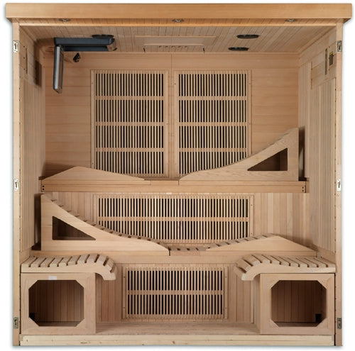 GoldenDesigns GDI-6996-01 Near Zero EMF Far IR Sauna, the Carbon Tech heating panels are engineered to produce a wider, softer heat that is evenly distributed throughout the sauna. Golden Designs Carbon Tech heating panels cover a significantly larger surface within the sauna. Sauna Use: Indoor Only |