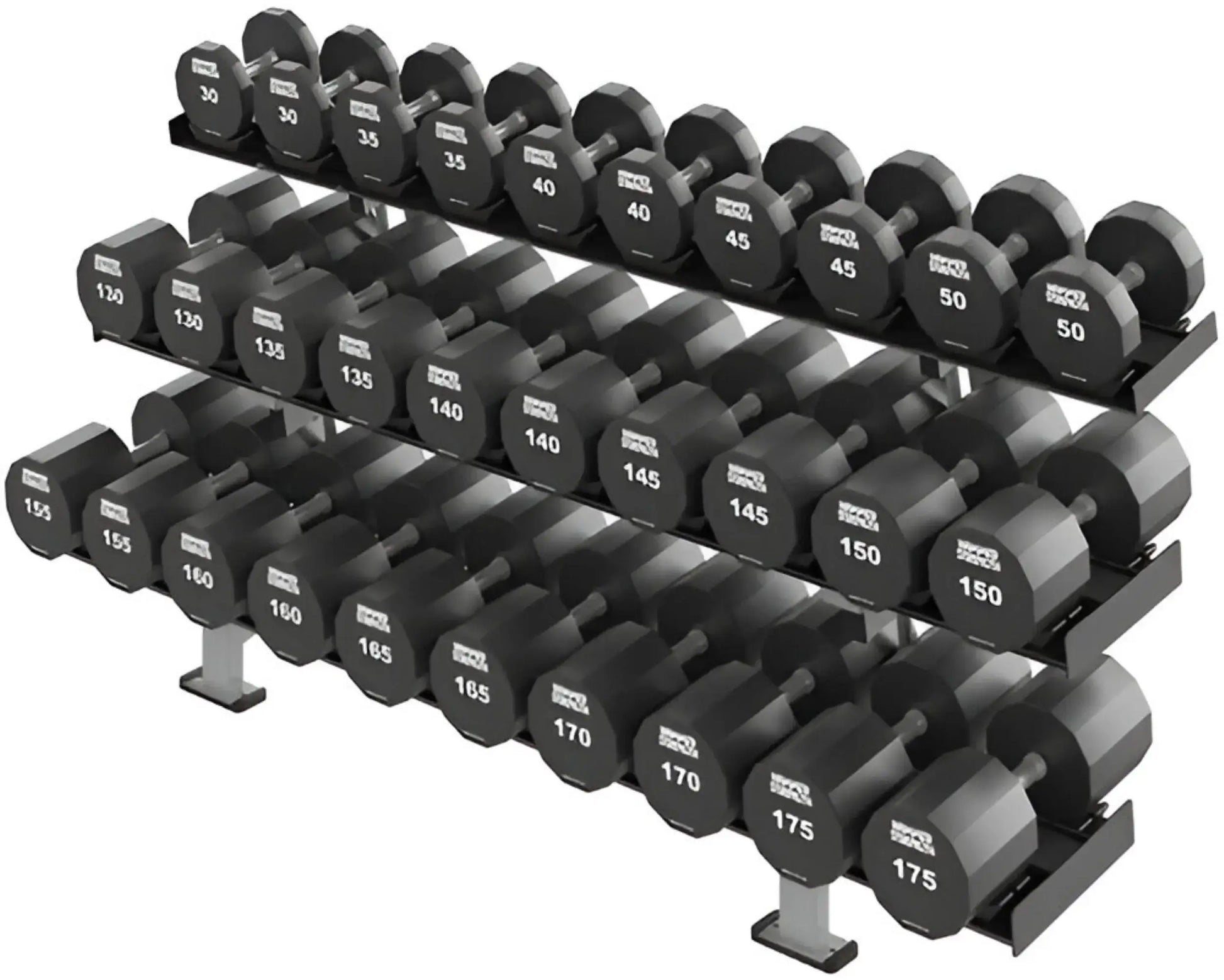 The Three-Tier Dumbbell Rack gives you convenient storage for up to 15 pairs of dumbbells.