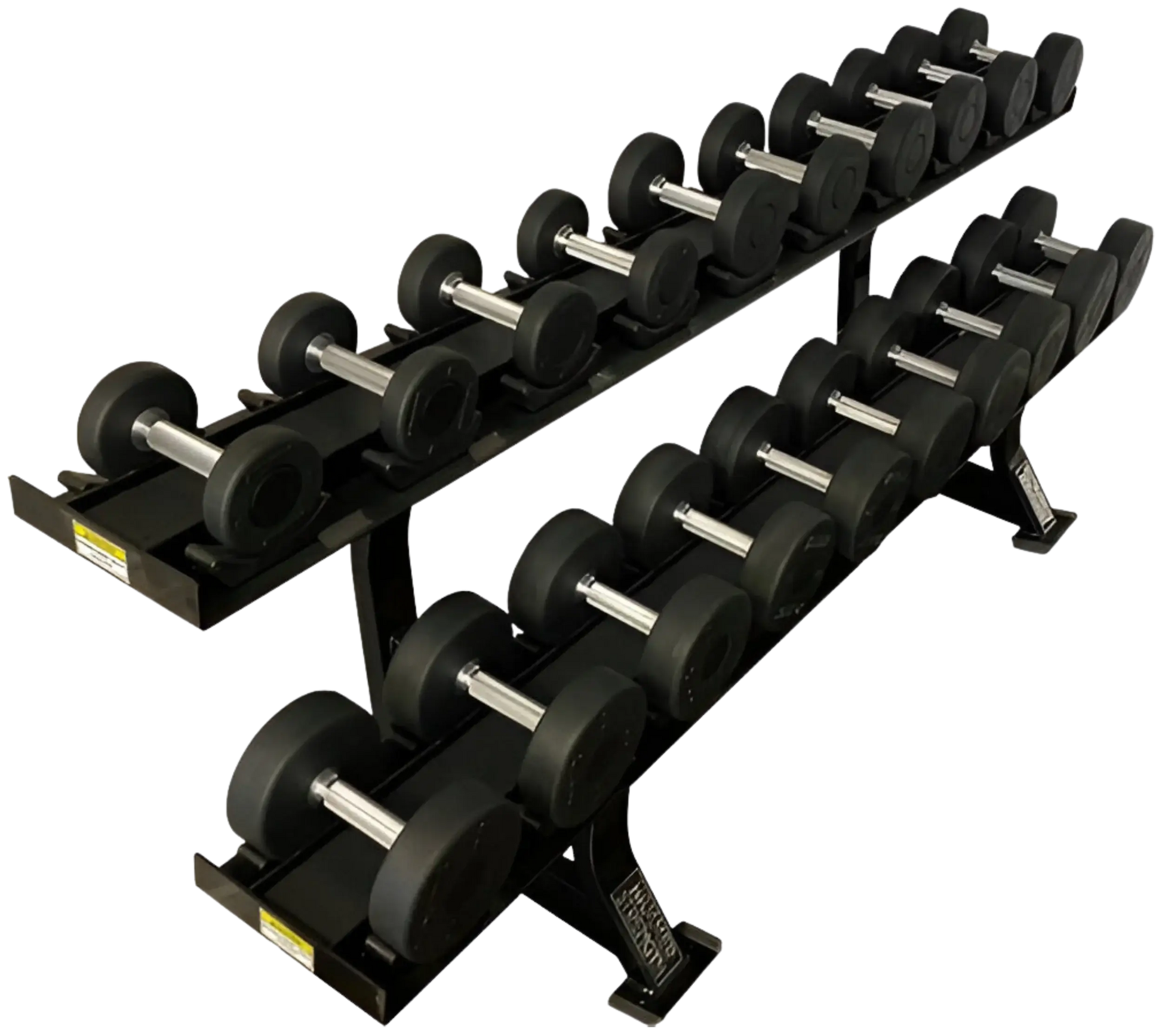 Hammer Strength Round Rubber Dumbbell Set 5-50 lbs w/2-Tier Rack