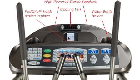 The Perfect Training Solution. With a footprint 20% smaller than other ellipticals on the market, the E9 is one of the most economically designed exercise units available. It takes up less space while providing the closest replication to running outside without the impact on the joints and knees. Its stride length can be adjusted from 17’ to 23’ to accommodate to multiple user needs. Designed for the most demanding commercial applications, but built to accommodate all fitness levels, the E9 ElliptiMillTM is the perfect training solution. Our patented Rollmentum center-drive replicates the body's natural motion. Adjust the stride between 17 and 23 inches. Orthopedic "gel" footpads provide optimal comfort and relieve foot fatigue. An integrated rear step reduces step-up height to 7", the lowest of any elliptical. The integrated side-frame footrests with non-skid surfaces allow for isolated upper-body workouts. Moving handrails feature molded contoured finger grips. The High-Tech Entertainment Center comes standard on the E9 ElliptiMill. Included is an integrated reading/accessory rack; iPhone, iPod or MP3 connectivity with Landice PodGrip; a personal cooling fan; high-powered stereo speakers; and a convenient water bottle holder. An advanced algorithm calculates your metabolic-equivalent speed based on your effort level and pedal speed. For example, if you can exercise at a metabolic-equivalent speed of 12 MPH on an ElliptiMill, you are capable of running 12 MPH outside. The Landice E9 ElliptiMill comes standard with a contact heart rate bar to give you feedback on how your body is affected by your workout.