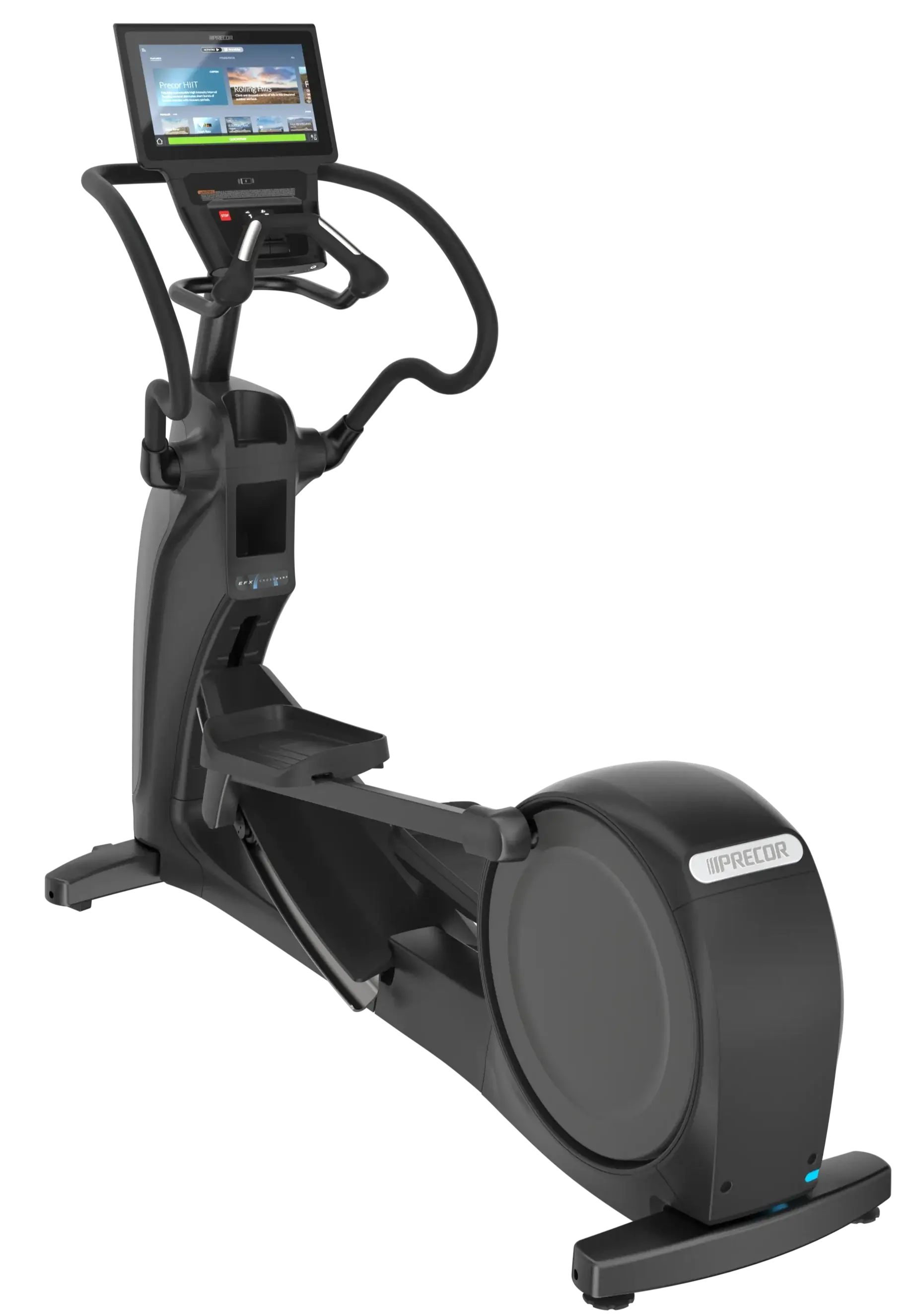 The EFX 883 combines essential reliability and ease-of-use with a natural, low-impact stride. With a touch screen console, and a simple, intuitive interface that draws users deeper into their workout, the P84 console on the EFX 883 is a fitness solution that gets more powerful the longer you own it. With the unique Precor CrossRamp technology, users can alter the path of the EFX 883 between 10 and 35 degrees in both forward and reverse stride motions, cross training various muscle groups to offer a wider range of workouts focused on the lower body.