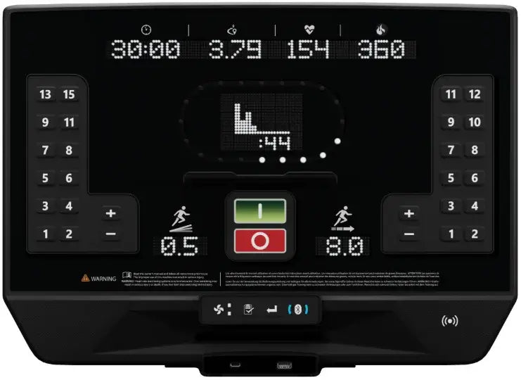 The 8TR treadmill integrates seamlessly into the OpenHub ecosystem, offering Apex HD Touch and Apex LED Display options to match your facility’s needs. The Apex HD Touch Display provides interactive entertainment, wireless device mirroring, and real-time performance tracking, while the Apex LED Display delivers Quick Key controls and streamlined metrics. Both include over-the-air updates and optional real-time data insights with Ecofit to maximize efficiency.